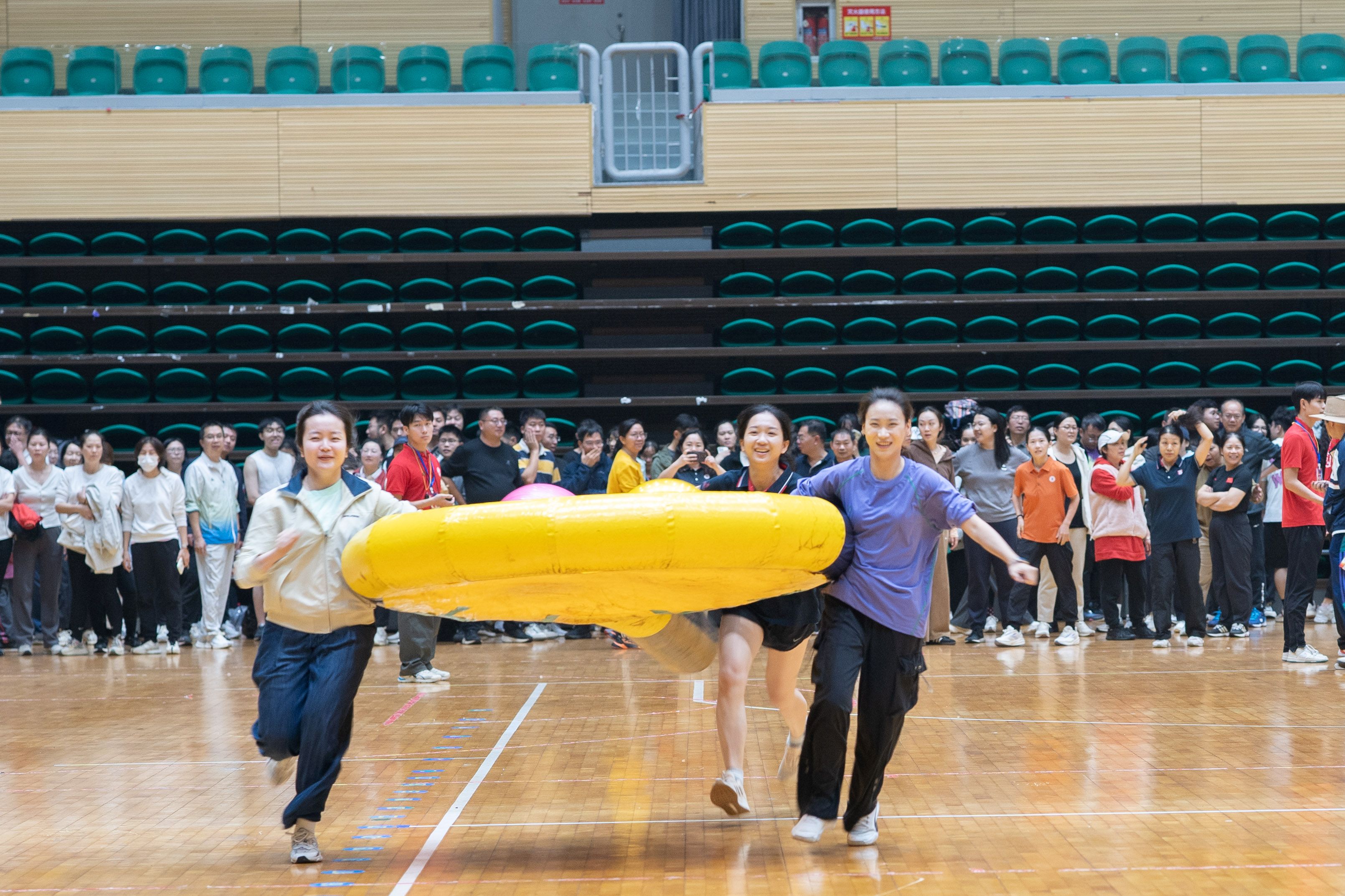 趣味运动场上,教师们暂别讲台,化身活力四射的“运动达人”。龟兔赛跑中,他们齐心向前,传递团结信念;同舟共济项目里,众人有条不紊,展现默契配合;击鼓颠球环节中,他们屏息凝神、精准控球,将团队协作的智慧发挥得淋漓尽致。尽管雨丝不断,但赛场上笑声与掌声此起彼伏,充分展现了熟女