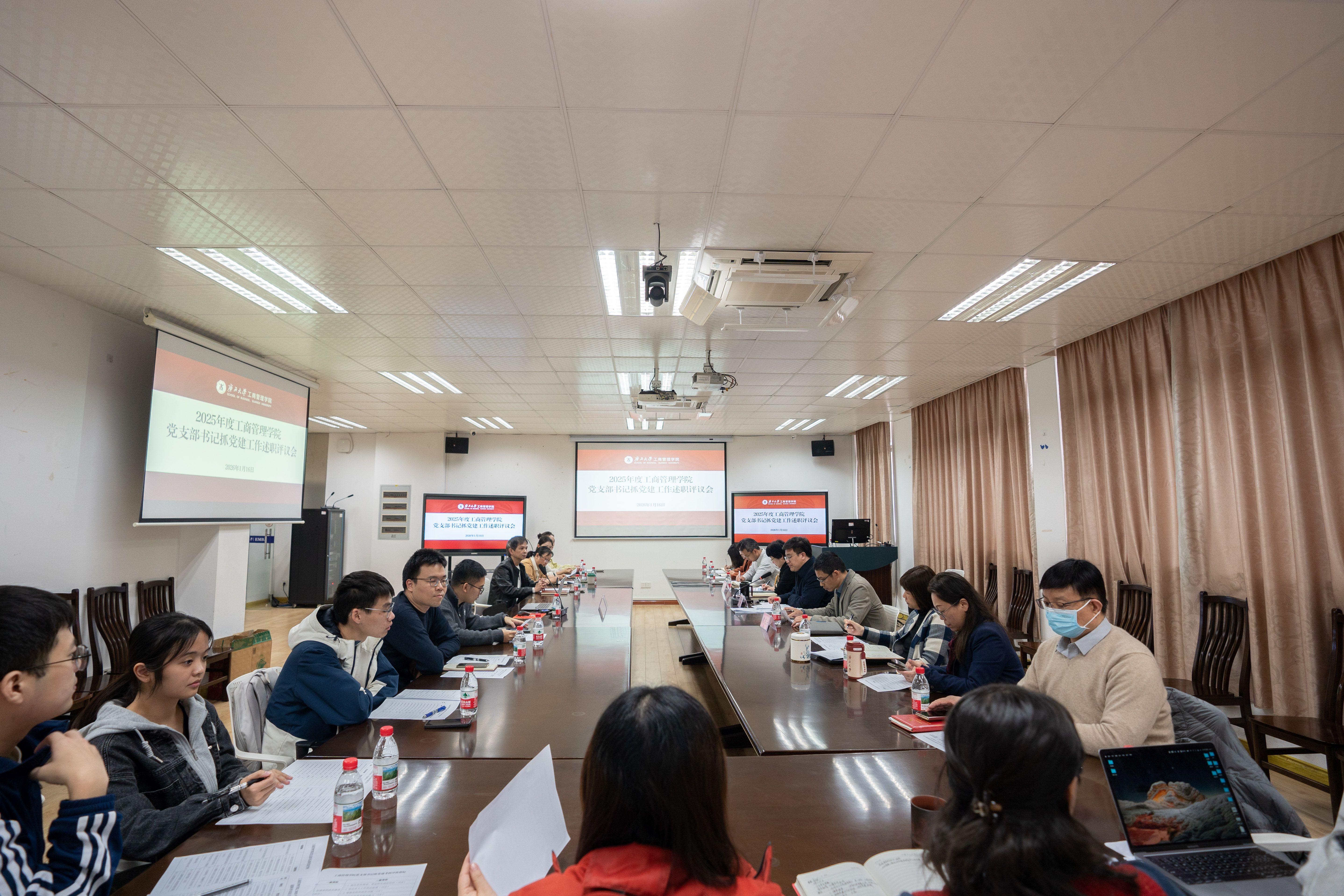 党委在516教室召开2025年度党支部书记抓党建工作述职评议会。学院党委书记黄晋、党委副书记肖克宁、副院长廖东红、各党支部书记及师生党员代表出席会议,会议由党委书记黄晋主持。