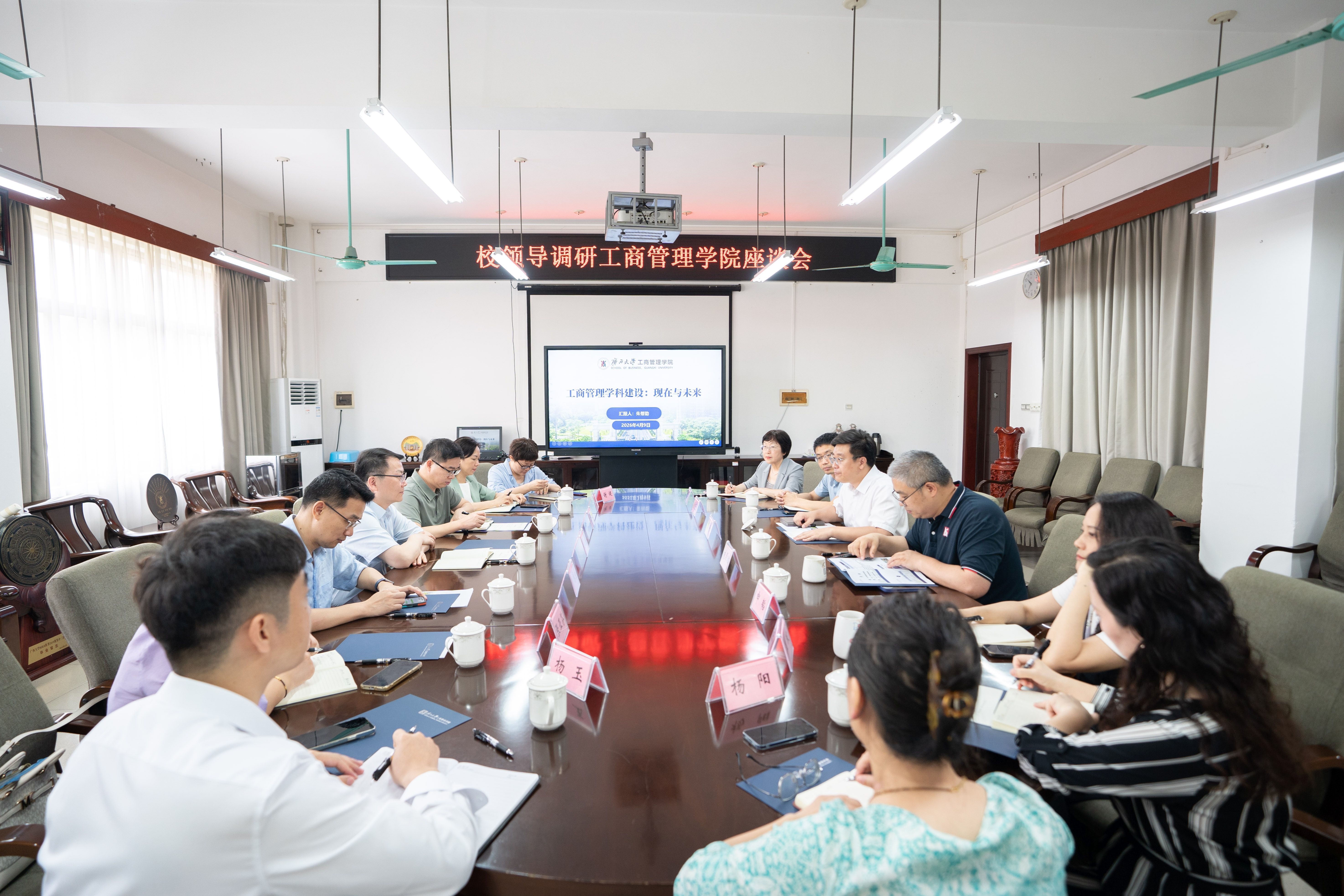 赵双良对学院取得的成绩表示肯定,并立足学校发展全局,对学院提出五项指导性意见:一是要深刻理解和把握高等教育转型的逻辑。在新一轮科技革命和产业变革背景下,我国高等教育发展的驱动因素由人才培养、学科建设转变为以服务经济社会和产业需求为驱动。这是社会发展各种因素叠加后产生的内在要求。学院和老师们应深刻理解这一发展规律,把建设重点从注重学科发展向服务国家使命上转变;二是强化特色发展。立足自身优势,以国家战略、地区发展所需为锚点,聚焦东盟和区域经济需求,整合资源打造优势,在差异化中深耕细作,以特色赋能学院高质量内涵式发展;三是深化交叉融合。强化与校内各学科之间的交叉合作,促进科学研究、学科建设及人才培养等各环节的多维联动与创新,加强与行业龙头企业的产教协同如与京东集团合作的面向东盟的“智慧物流科技小院”,充分利用好这些项目能加速人才链、产业链、创新链的融合;四是拓展国际交流,构建师生双向交流长效机制,融入全球商学教育网络;五是加快编制学院“十五五”规划,注重目标凝练与实施路径细化,确保规划可操作、能落地、有实效。